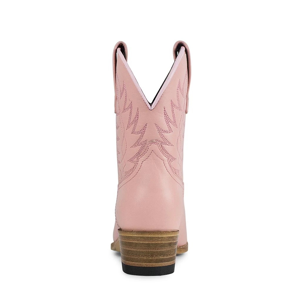 Botín de Sendra cowboy de nueva colección, un modelo exclusivo de sendra.com, en color rosa, con 5 cm de tacón, horma de punta y fabricación good year.