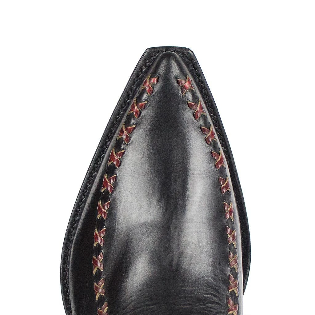 Bota Sendra en piel brillante , con bardados en la caña,3 cm de tacón y horma de punta, un modelo de hace 30 años que hemos rescatado con pieles actuales y un referente para nuestra marca