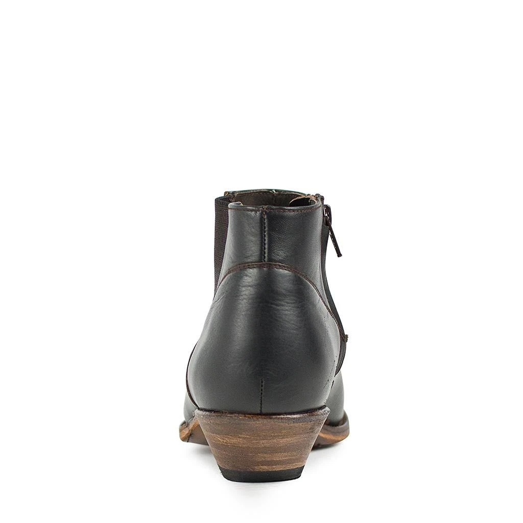 Botín de piel Sendra, con elástico lateral, piel en marrón, 3, cm de tacón, cremallera interna ,muy cómodo, horma de punta y tacón cubano.