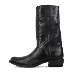 Bota unisex de piel engrasada y cepillada para un efecto vintage, caña alta, horma redonda, estilo biker, tacón de unos 3,5 cm, suela de cuero, cosido GoodYear y la calidad y garantía Sendra.
