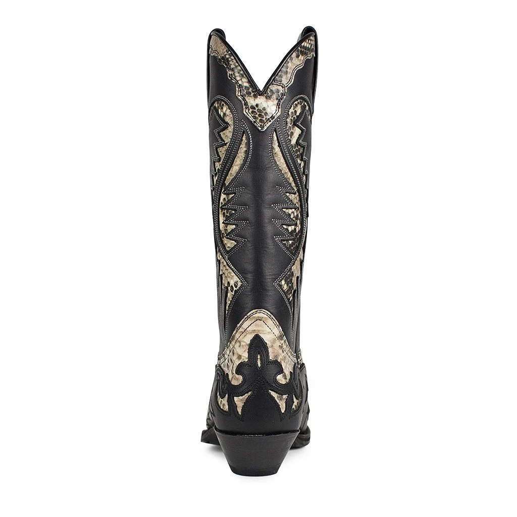Bota con una combinación de piel escamada y cuero para mostrar un look atrevido. Tacón de 4,5 centímetros cubano para una mayor comodidad a la hora de caminar sin perder elegancia.