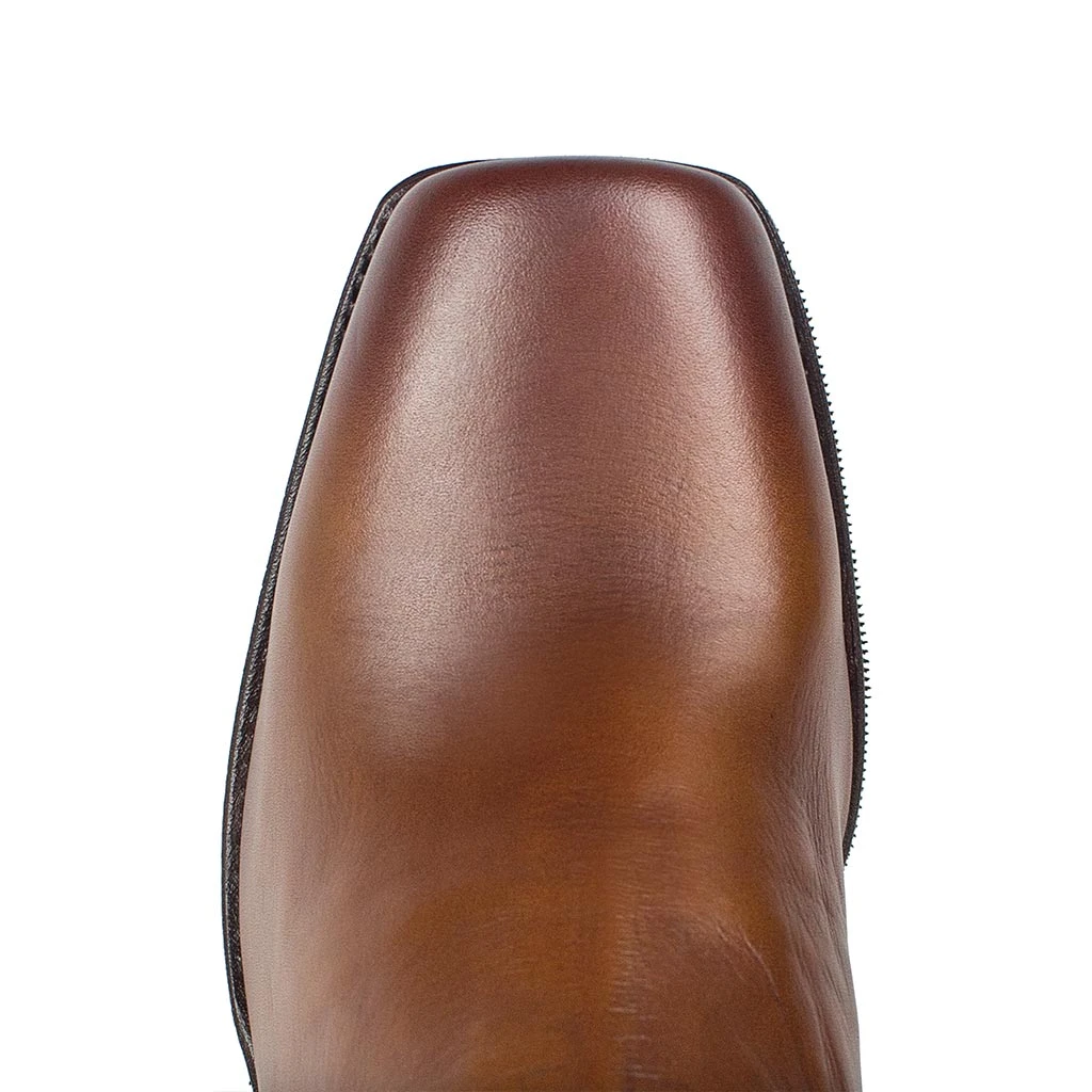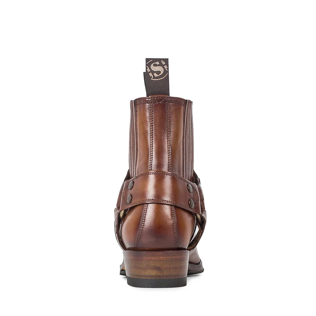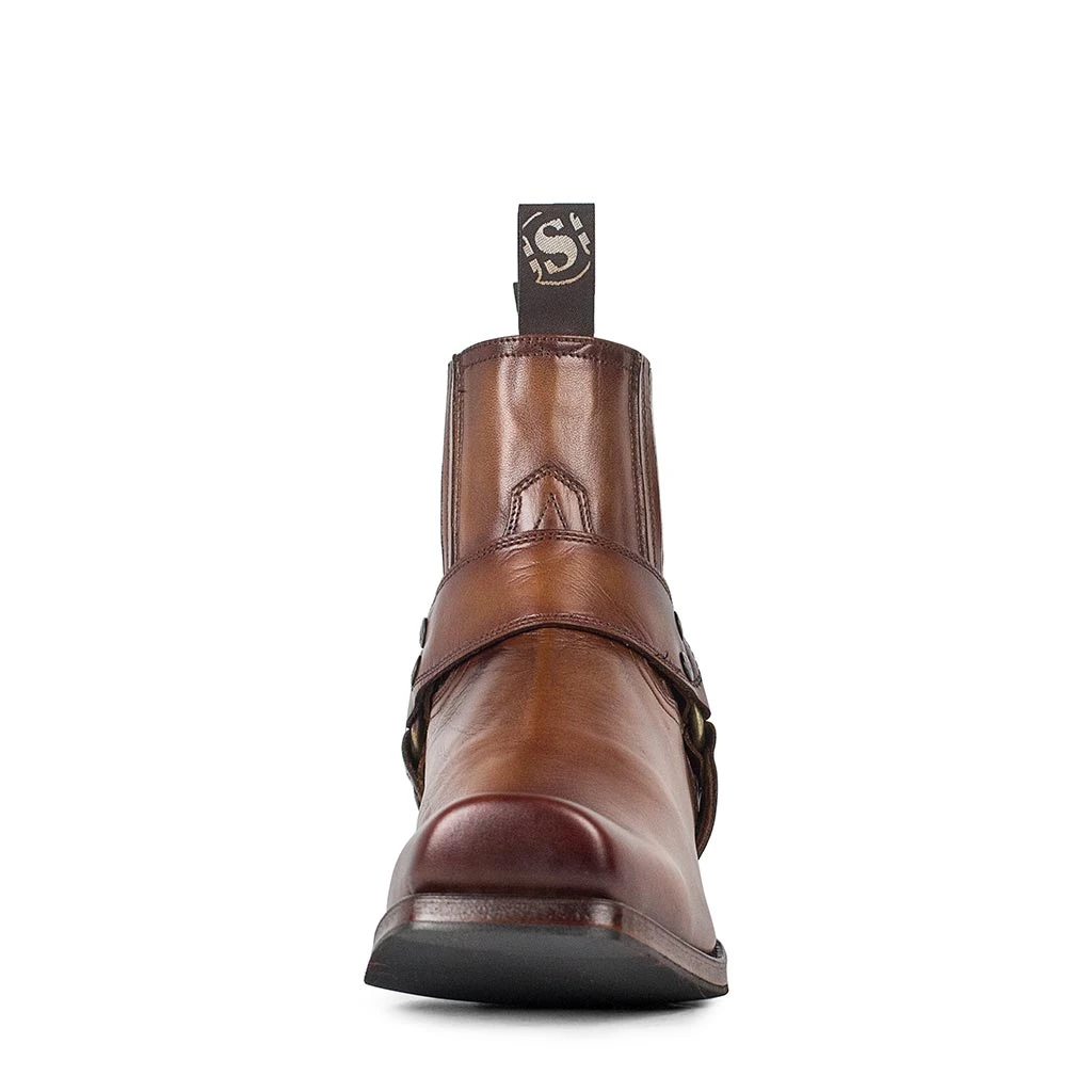 Bota estilo Biker de piel de excelente calidad en un color marrón degrade espectacular, una bota clásica pero al mismo tiempo elegante. Cuenta con una punta cuadrada, tacón bajo y un arnes de diseño en empeine.