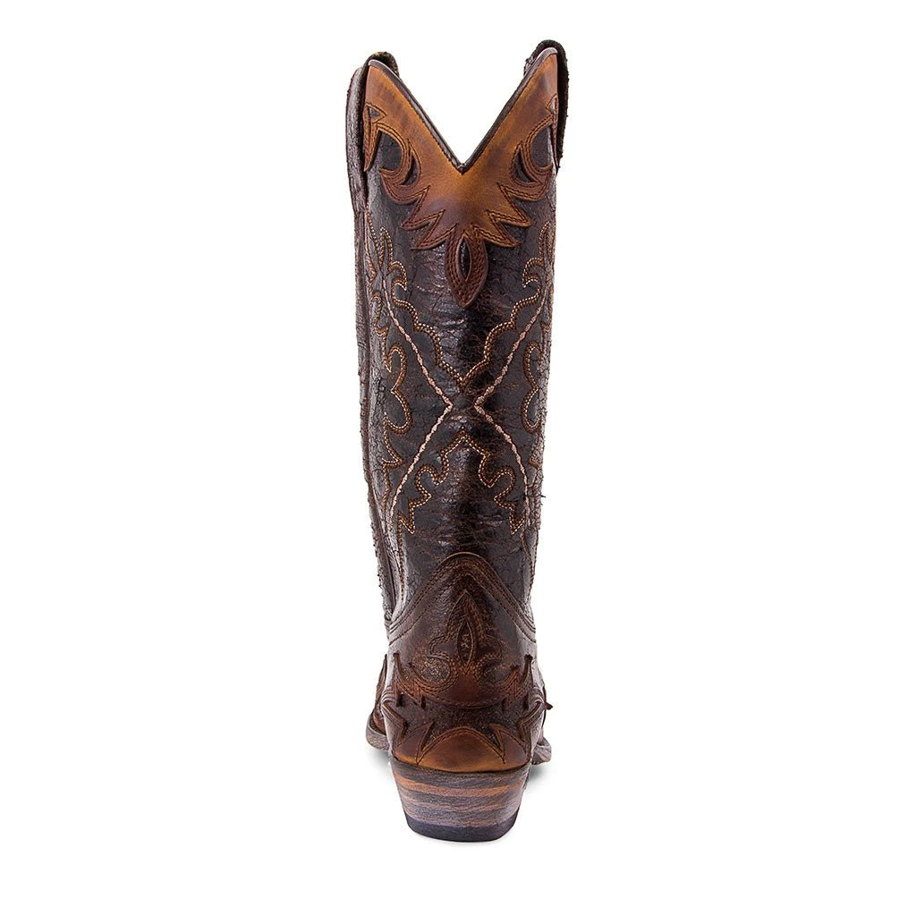 Bota de piel con tonos marrones contrastantes, tacón semicubano y horma cuervo en punta para marcar el estilo Cowboy de Sendra . Cuenta con un recosido que rodea la parte superior y un bordado de diseño en caña, fabricación con la técnica Goodyear y suela de cuero.