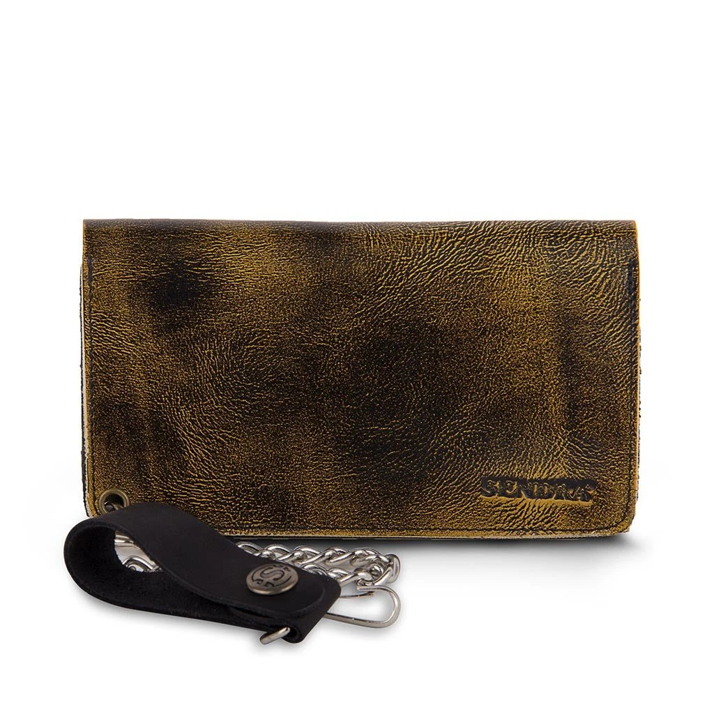 Cartera Sendra de piel, con bordado, estilo biker con cadena, y cierre de mosquetón para mayor seguridad ,2 compartimentos para billetes y documentos y 1 compartimento con cremallera para monedas con nuestra garantía Sendra.