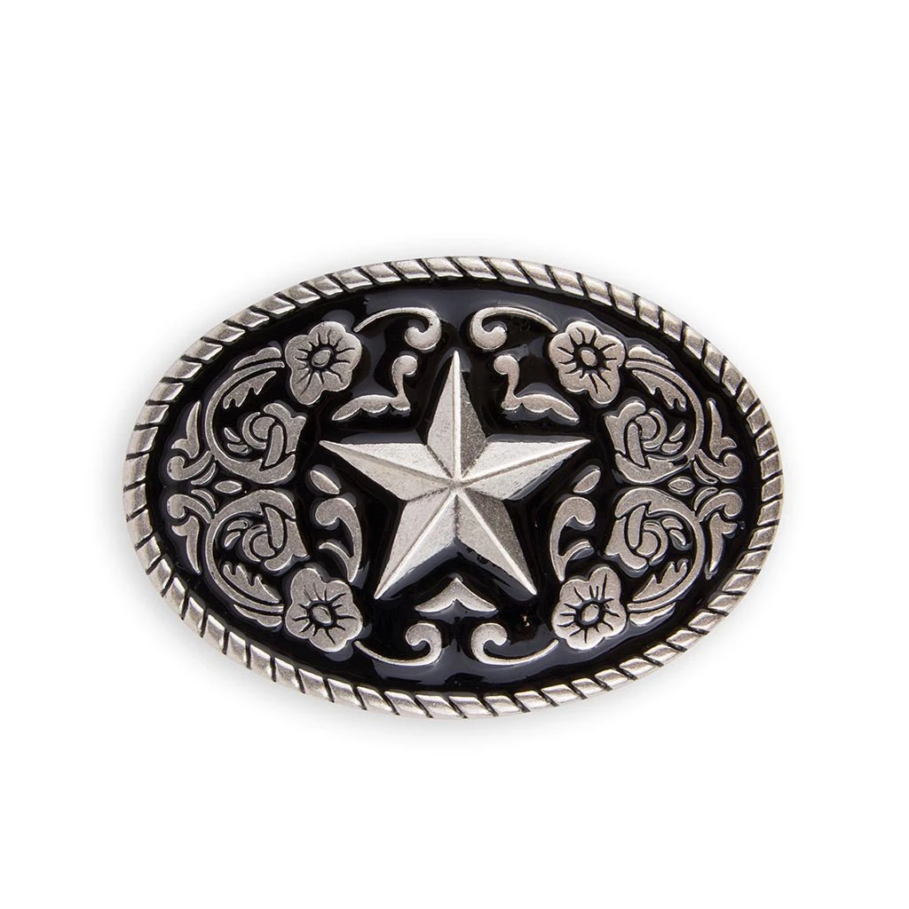 Hebilla de metal esmaltado con dibujo central de una estrella ranger en fondo negro para completar tu estilo más cowboy, con la calidad y garantía Sendra.